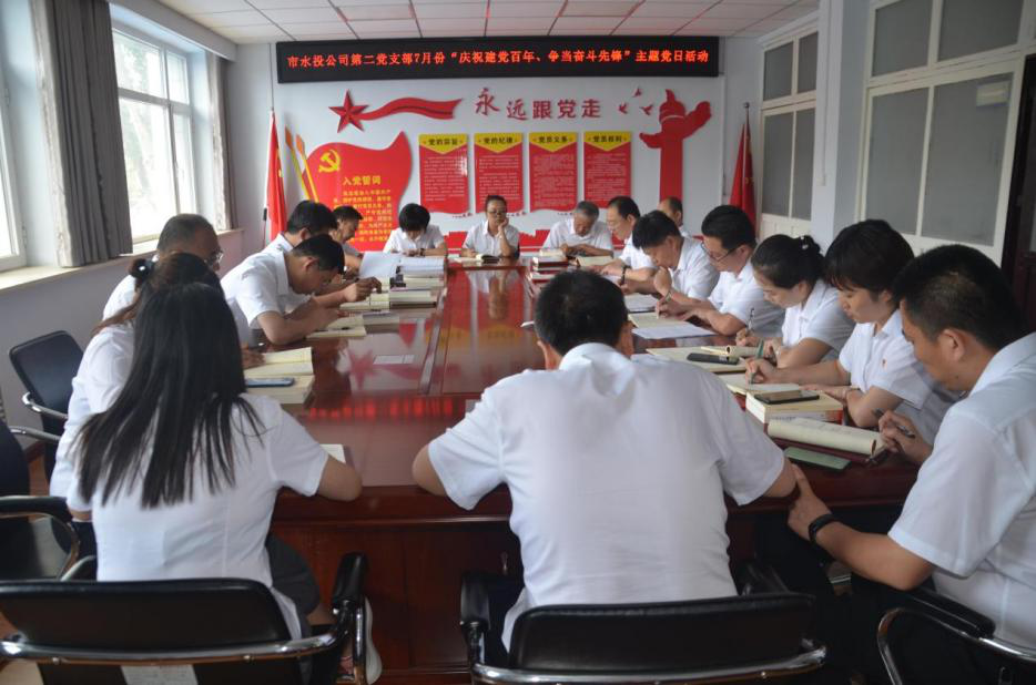 按照水投公司黨委統(tǒng)一部署要求,第二黨支部2021年7月1日下午組織全體黨員、積極分子、群眾代表開展了“慶祝建黨百年、爭當奮斗先鋒”主題黨日活動,會議由支部書記吳爭兵主持。