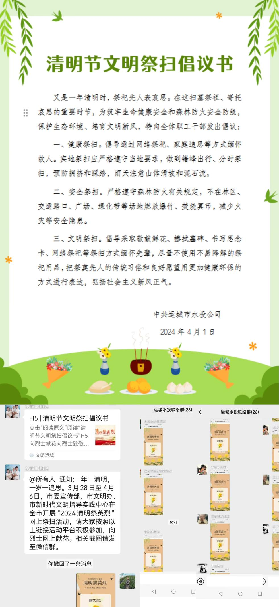 山河肅穆,英靈長眠,清明節(jié)祭掃革命先烈是中華民族的光榮傳統(tǒng)。為弘揚中華民族優(yōu)良傳統(tǒng),培育文明新風,按照市文明委《關(guān)于組織開展“我們的節(jié)日”清明祭英烈主題活動的通知》要求,4月2日,公司開展“網(wǎng)上祭英烈”主題活動。