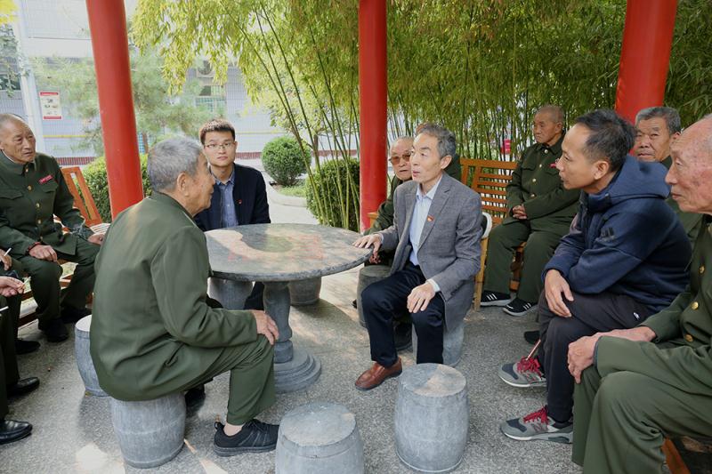 受公司黨委書記、董事長兼總經理崔作銘委托,公司副總經理呂希汶代表公司領導班子向革命前輩致以節(jié)日問候。公司兩位退伍軍人帶領大家一起高唱《團結就是力量》,歌聲雄渾有力,博得了老人們熱烈的掌聲。在光榮院,黨員們有的打掃庭院、撿拾草坪垃圾,有的與老人圍坐一起詢問他們的衣食起居和身體健康狀況,聆聽他們講述過去參加革命、奮勇抗戰(zhàn)的紅色經歷。