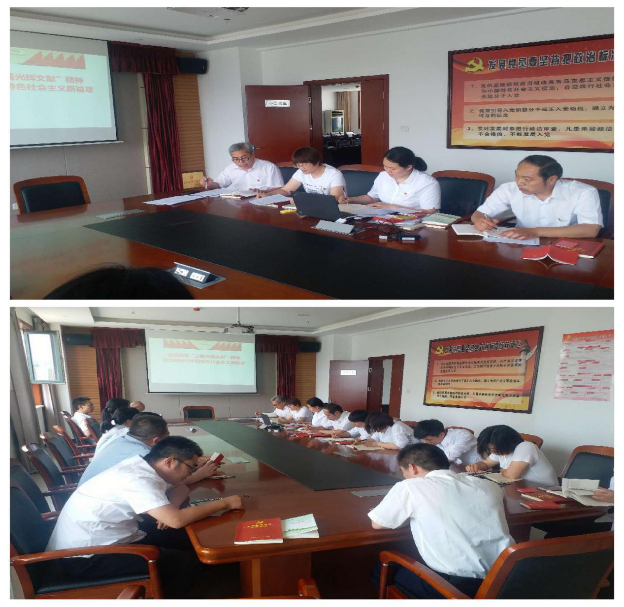 在開展組織生活環(huán)節(jié),支部書記徐睿同志首先傳達(dá)了運(yùn)城市宣傳部下發(fā)的《關(guān)于持續(xù)做好黨的十九屆四中全會(huì)精神和習(xí)近平總書記“三篇光輝文獻(xiàn)”精神宣講通知》,之后圍繞《貫徹落實(shí)“三篇光輝文獻(xiàn)”精神 書寫新時(shí)代中國特色社會(huì)主義新篇章》給黨員們上了一堂專題黨課,要求黨員干部時(shí)時(shí)重溫文獻(xiàn)精神,將習(xí)總書記的重要講話落實(shí)到具體的工作中,不斷思考,注重落實(shí),為我國水利事業(yè)貢獻(xiàn)自己的力量。