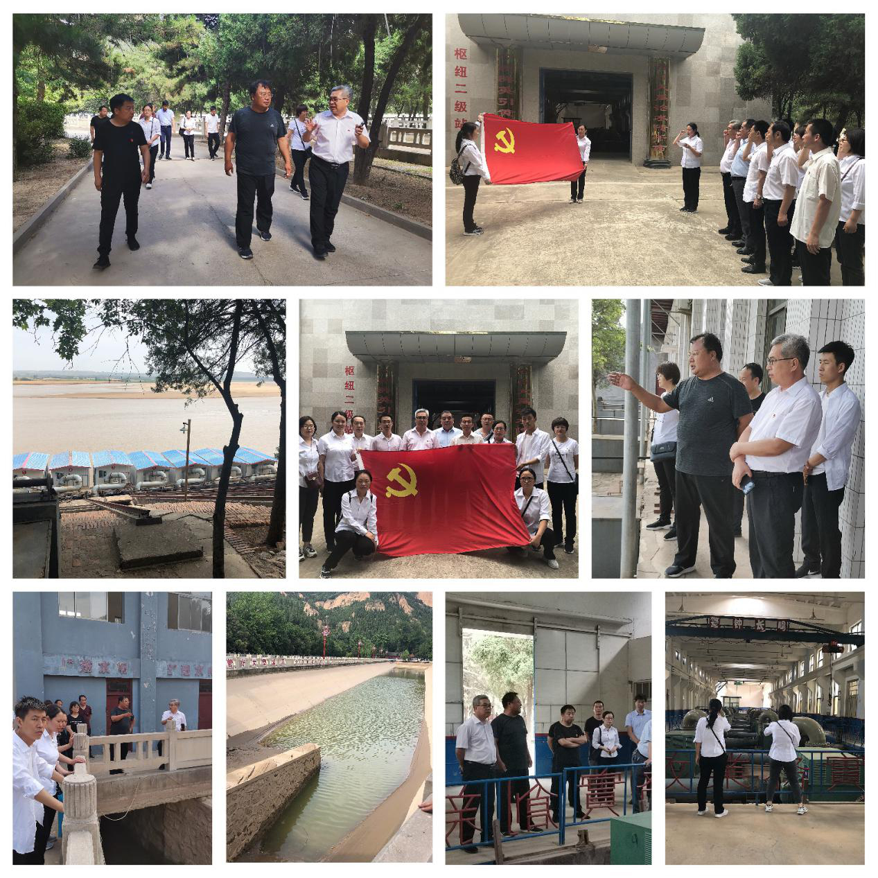 在大禹渡董局長的帶領(lǐng)下,同志們先后參觀了一級站、沉沙池、二級站,工作人員對灌區(qū)當(dāng)初的建設(shè)、泵站目前的運(yùn)行情況等進(jìn)行了詳細(xì)的介紹,之后雙方進(jìn)行了座談,徐睿書記指出,大禹渡在建站初期有三個(gè)特點(diǎn):一是移動(dòng)式泵車,二是沉沙池,三是二級站揚(yáng)程最高,有190多米。今天深入灌區(qū)與施工運(yùn)行管理人員進(jìn)行交流溝通,了解運(yùn)行中存在的問題,使施工管理運(yùn)行與設(shè)計(jì)有效銜接,促進(jìn)我們進(jìn)一步要提高用科學(xué)思維思考、用科學(xué)態(tài)度做事,真正做到黨建工作和設(shè)計(jì)任務(wù)深度融合,做到真學(xué)、真懂、真信、真用。我們要提高設(shè)計(jì)服務(wù)意識,提升設(shè)計(jì)服務(wù)質(zhì)量,加強(qiáng)業(yè)務(wù)學(xué)習(xí),提升業(yè)務(wù)能力,使我院設(shè)計(jì)質(zhì)量上個(gè)新臺階。另外,同志們就工作中遇到的技術(shù)問題同大禹渡管理人員進(jìn)行了深入交流,黨員們還在黨旗下重溫入黨誓詞,不忘初心、牢記使命,更加堅(jiān)定了作為水利人的責(zé)任和擔(dān)當(dāng)。