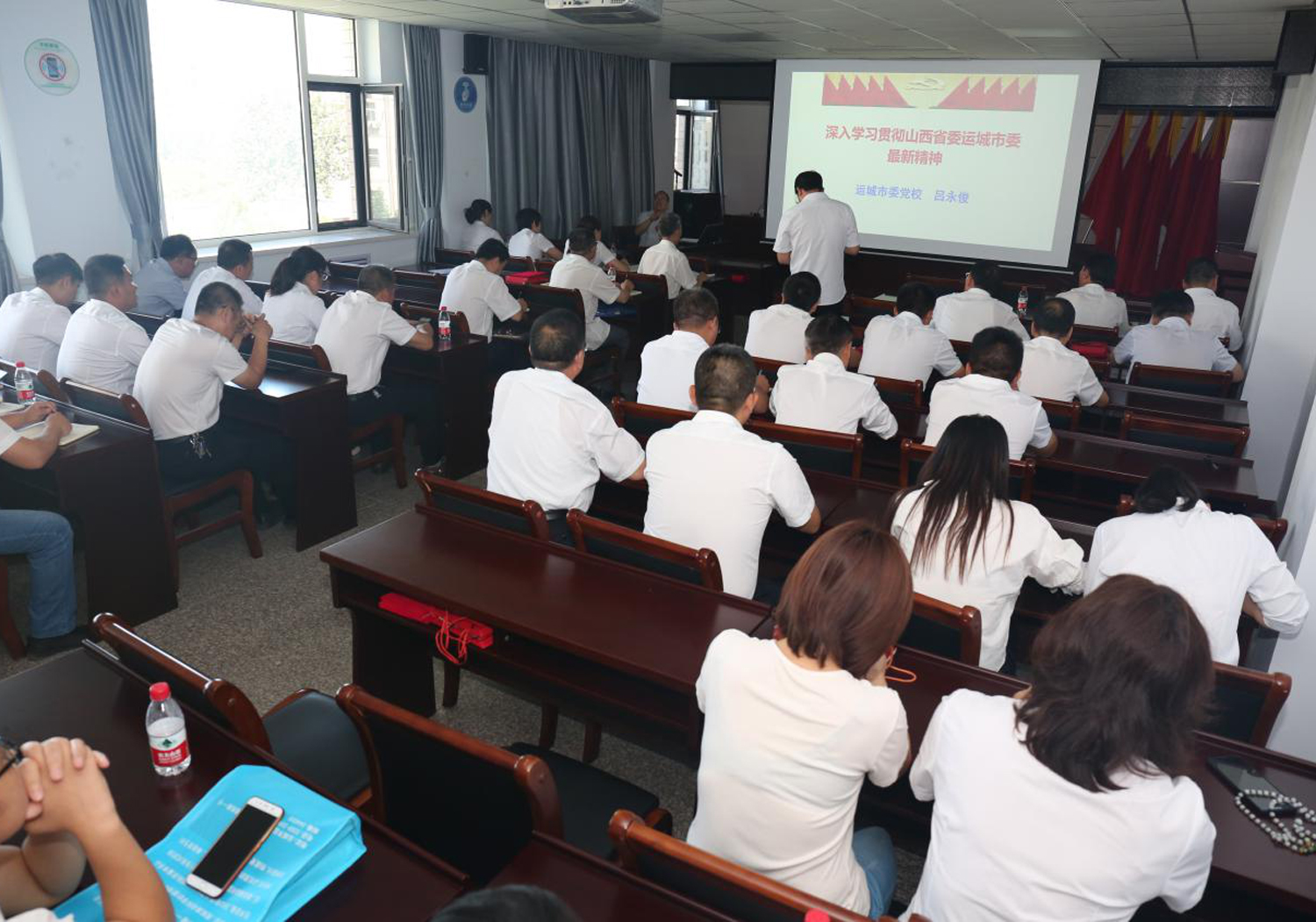表彰大會結束后,公司特邀市委黨校公共管理教研室主任呂永俊副教授為大家講了題為《深入學習貫徹山西省委運城市委最新精神》的專題黨課,呂永俊教授以習近平視察山西重要講話精神和“三篇光輝文獻”為切入點,分別從“面臨形勢與發(fā)展思路要求、全力推動高質量轉型發(fā)展、全力以赴保障與改善民生和全面拓展黨的建設新局面”四個方面,為大家詳細講解了我市貫徹落實習總書記重要指示精神和省委工作部署的主要做法,以及我市開拓創(chuàng)新、砥礪奮進的重大實踐。
