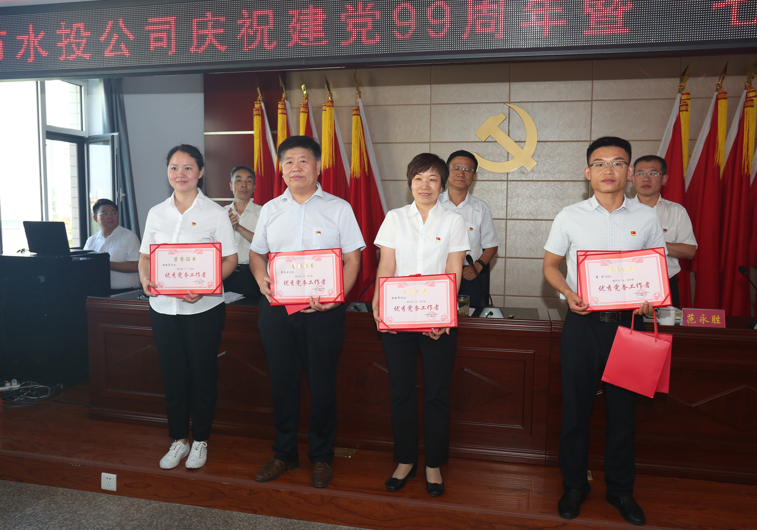 為隆重慶祝中國共產黨成立99周年,6月30日,公司黨委召開了慶祝建黨99周年暨慶“七一”表彰大會,公司黨委班子成員、各支部全體黨員、入黨積極分子和部分群眾代表參加了會議。
