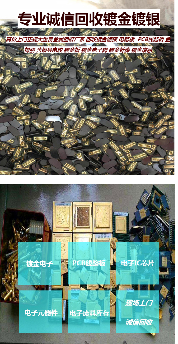 (一)稀有金屬類:(1) 廢金銀回收類:含金廢料包括:成色金、金鹽、金水、金絲、金泥渣、鍍金廢水、鍍金邊角料、鍍金頂針插針、鍍金柔性線路板、銅鍍金、鍍金手機板、電鍍廠的淤泥、退金水、銀焊線、銀焊條、銀漿、擦銀布、銀漿空瓶等廢品
