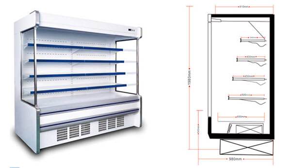 2.水果 風(fēng)幕柜:是對(duì)于風(fēng)幕柜的一種稱呼,因?yàn)轱L(fēng)幕柜主要放飲料水果等比較好看,保鮮效果好,近些年,因此叫做水果風(fēng)幕柜。