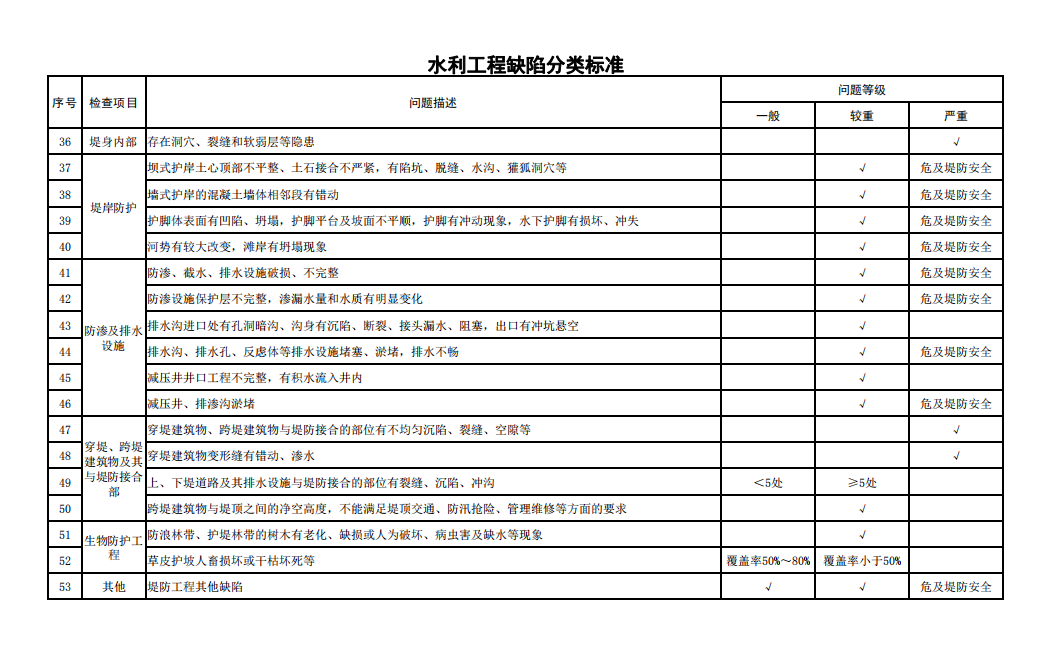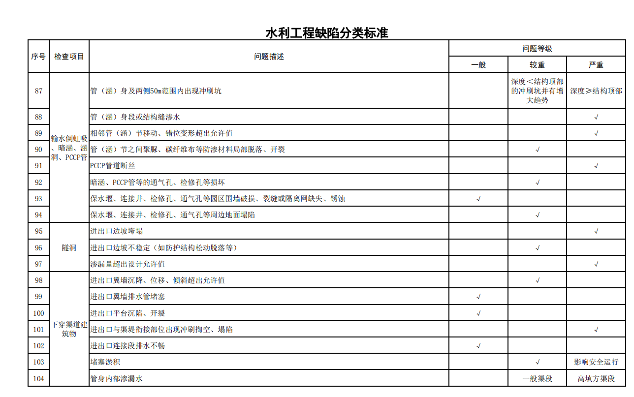 2.水利工程缺陷分類標準