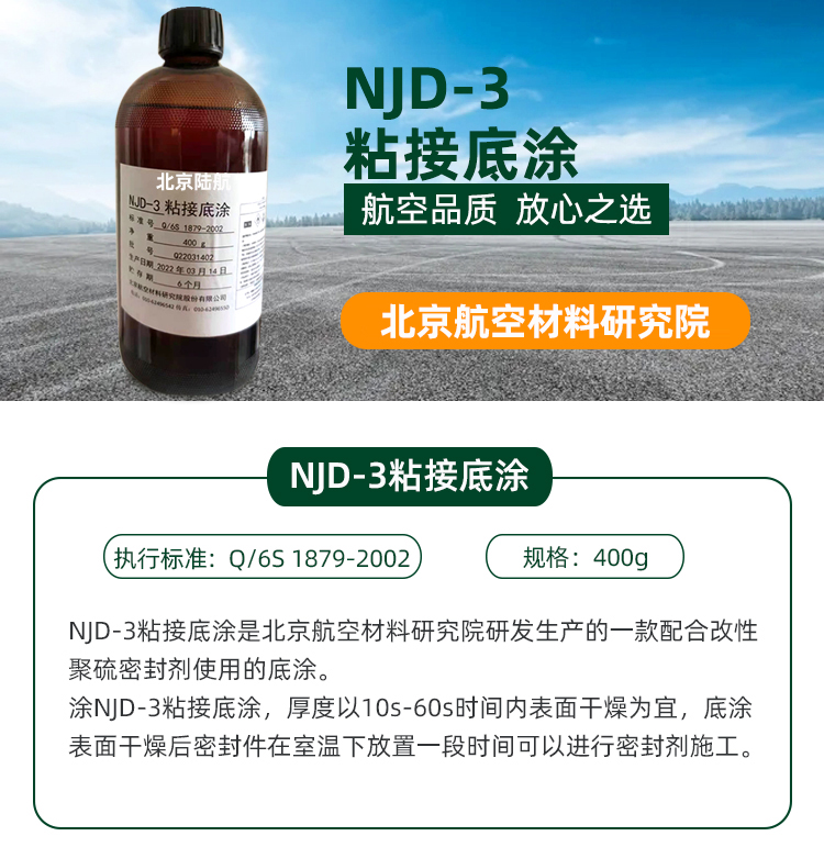 NjD-3粘接底涂是北京航空材料研究院研發(fā)生產(chǎn)的一款配合改性聚硫密封劑使用的底涂。