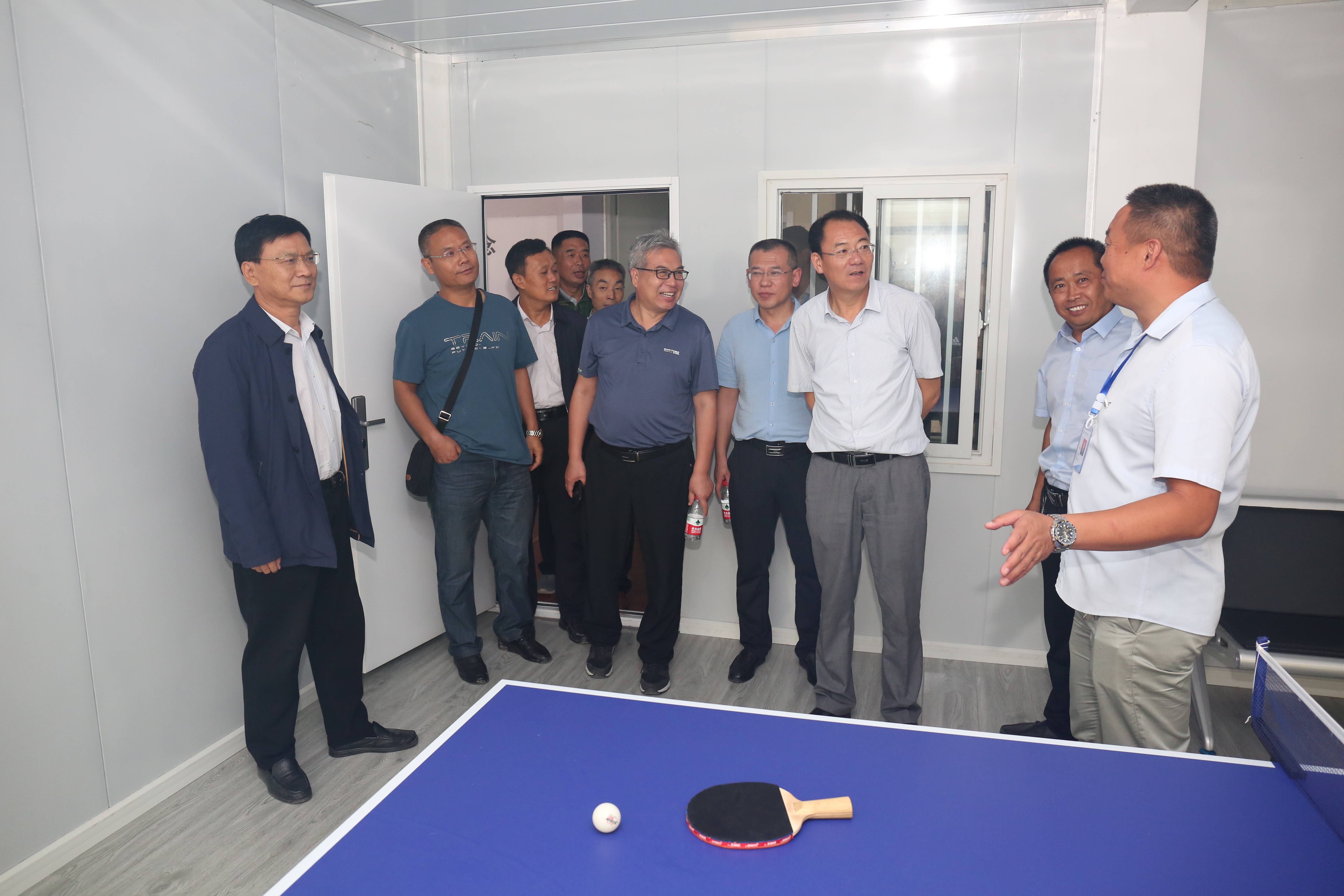 隨后一行人又來到了臨時(shí)租房的姚暹渠禹都段項(xiàng)目部,參觀了區(qū)域配置情況。