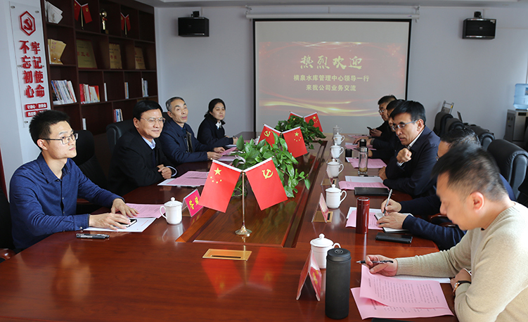 11月10日下午,呂梁市橫泉水庫管理中心主任任劍鋒一行來我公司進行業(yè)務交流。黨委書記、董事長兼總經理崔作銘、副總經理呂希汶參加了交流會。