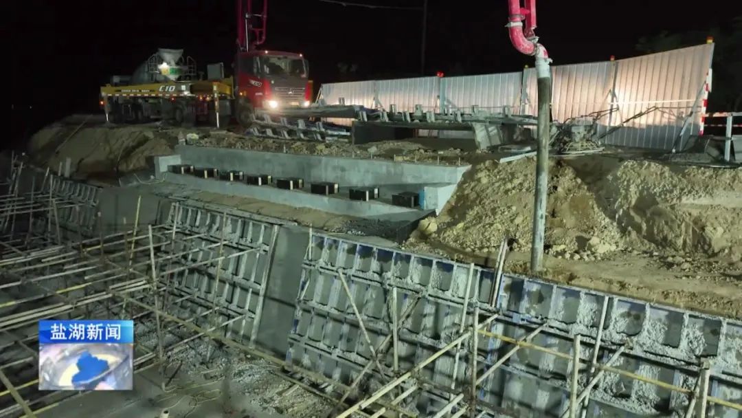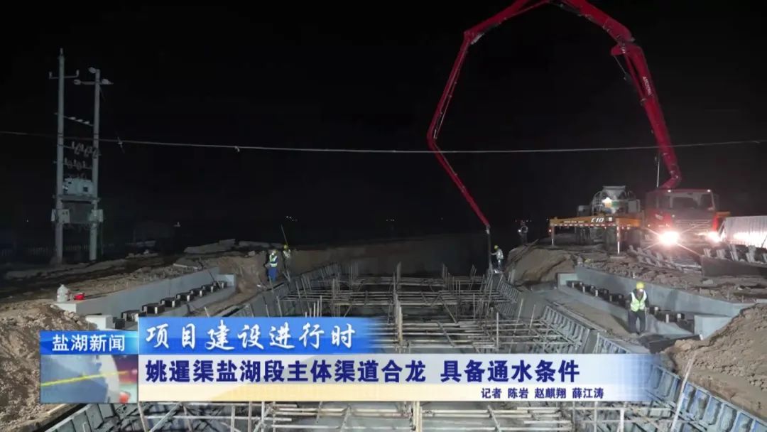 現(xiàn)在是4月28日晚上11時(shí)30分,在我身后,姚暹渠鹽湖段最后一部分水泥板正在進(jìn)行澆筑。澆筑完成后,全長(zhǎng)24.9公里的姚暹渠鹽湖段主體渠道將實(shí)現(xiàn)合龍,形成完整的過(guò)水通道,標(biāo)志著工程迎來(lái)關(guān)鍵的階段性勝利。